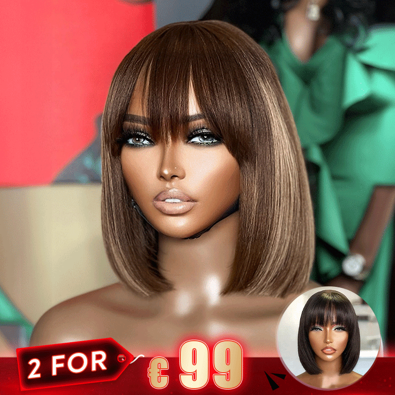 2 𝑭𝑶𝑹 €99🔥 Essentiel De L'Été Soyeux Bob Facile À Coiffer Glueless Perruque Lisse Avec Frange